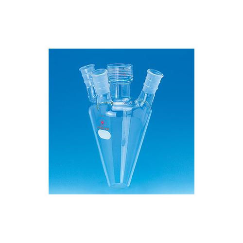 Fabricated from borosilicate glass with walls tapered inward toward bottom to allow operation with smaller volumes. Supplied with #36 Ace-Thred center neck and three 24/40 side necks. Use Bushing and O-Ring in #25 Ace-Thred, Bushing and O-Ring in #36 Ace-Thred to form a leak-tight compression seal with all 9814 Horns with groove and Slide Adapter. Stated capacity is without horn.
